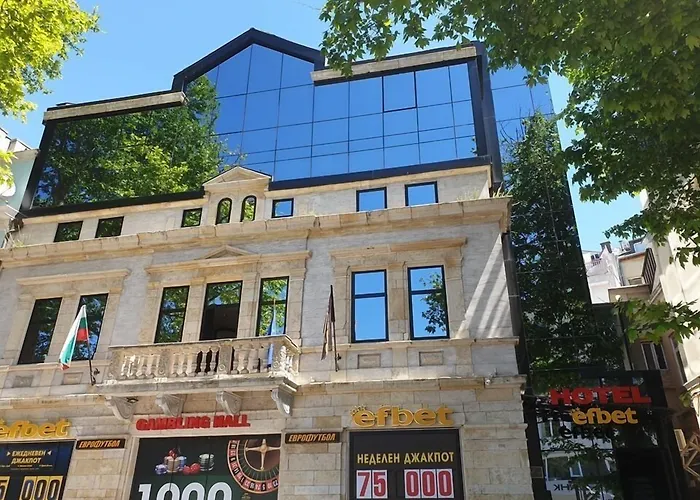 Het 4-sterrenhotel heeft een centrale ligging op 150 meter wandelafstand van het Varna Operahuis en op 2 km afstand van de N.Y. Vaptsarov Marineacademie. Gelegen in het voetgangersgebied, is Efbet Varna op een korte afstand van het Archeologisch Museum van Varna. Natuurliefhebbers zullen de nabijheid van Zwarte Zee waarderen, die op op 5 minuten wandelen vandaan ligt. De Kathedraal van de Tenhemelopneming van de Moeder Gods is op amper 400 meter van de accommodatie gelegen. Het is op 10 minuten loopafstand van de Centrum bushalte en op een steenworp afstand van het Central Varna treinstation in Varna.